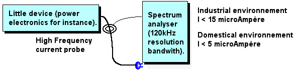 For "little" devices whose dimensions are small, compared to the wavelength, radiated phenomenas are essentially due to the cables. Consequently, it is often sufficient to know the current value in them, to evaluate the radiated emission level. In the following, indicative values for industrial and domestic environment are given. ![]() For larger devices, and/or to know exactly where the disturbance is located, a simple H-probe can be used, the Moebius probe. The measured voltage U give information on the magnetic field H.