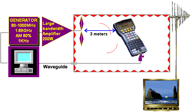 The use of a FARADAY chamber avoids the propagation of the Electromagnetic field in the vicinity. Therefore, the apparatus outside of the chamber is not affected. Unfortunately, reflections from the FARADAY chamber walls lead to stationary waves. Consequently, the field within the FARADAY chamber is not uniform. ![]() Absorbers are used to avoid all reflections in the FARADAY chamber, which is then called an "Anechoic chamber". |