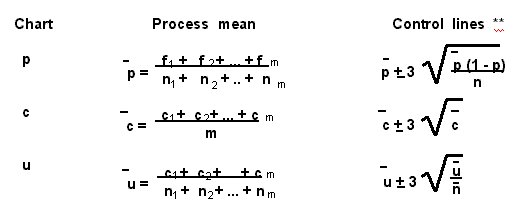 - c and u charts - deal with the defects themselves, or the reasons why the