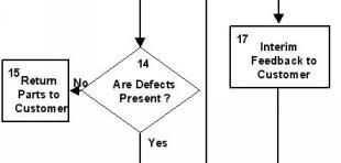 |  | 14. Are defects found? 15. No defects found, return to customer with supporting information. 16. Arrange replacement parts to be shipped to customer 17. Interim feed back with containment activities. 18. If sort is required, carry out at customer's site in house. 19. Raise concern summary sheet and issue to relevant supervisor. | |