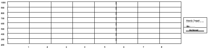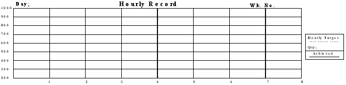 The hourly target for the working day is entered into the box to the right of the chart. The target line is drawn on the chart. Every hour the operator draws on the line represtative of the quantity produced. The graphical display will visually identify any variances from target.
