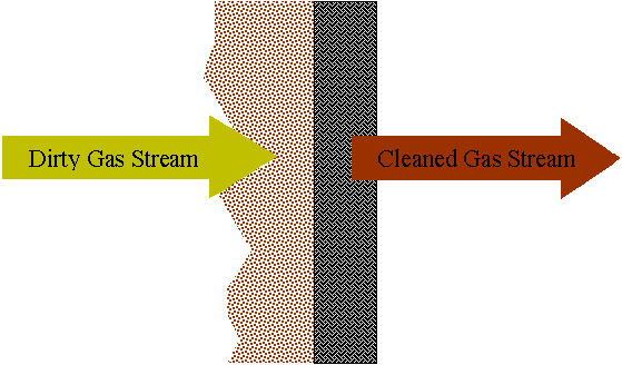 The filter cake, which builds up on the dirty side of the fabric, increases the efficiency.