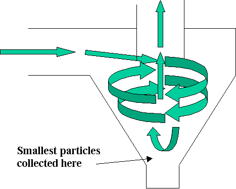 However the smallest particles are collected as the airflow makes its final turn back through the centre of the vortex.